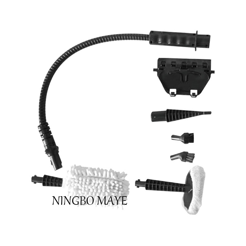 | Accessories | 15pieces 2x tube conectors 1 x measuring cup 1x Funnel 1 x window Sgueegee 1 x round Metal brush 1 x round nylon brush 1 x jet nozzle 1 x Iron straight nozzle 3x towel sleeve 1x extension hose 1x triangle plastic bottom 1 x washable microfiber pad |