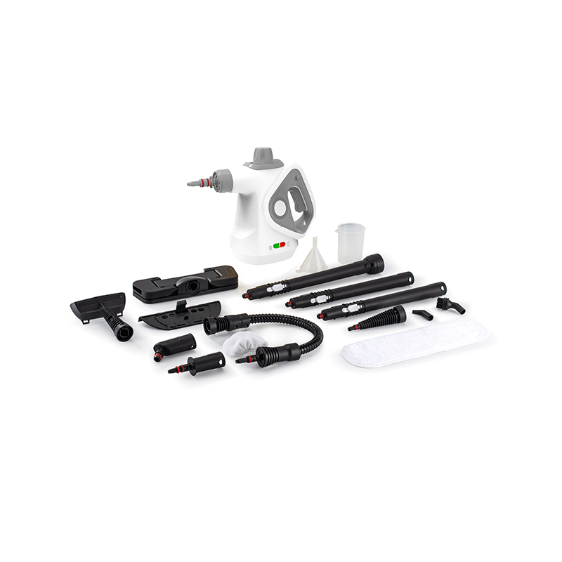 READ MOREThe TM-377 900-1050W Multi-purpose Handheld Steam Cleaner with Mop is an all-in-one cleaning solution designed to tackle a wide range of household cleaning tasks. This versatile steamer combines powerful steam cleaning with the convenience of a mop, making it perfect for cleaning floors, windows, kitchen surfaces, and more. The TM-377 offers exceptional performance to sanitize and clean without the need for harsh chemicals.It heats up in just 1-3 minutes and provides up to 10 minutes of continuous steam, ideal for deep cleaning and removing tough stains. The included 16-piece accessory set, which features essential tools like long and bent spray nozzles, round brush, extension hose, and a towel, is complemented by 7 mop accessories: 3 mop tubes, 2 mop transfer connectors, a long sleeve towel, and a mop bottom, making it especially effective for floor cleaning.